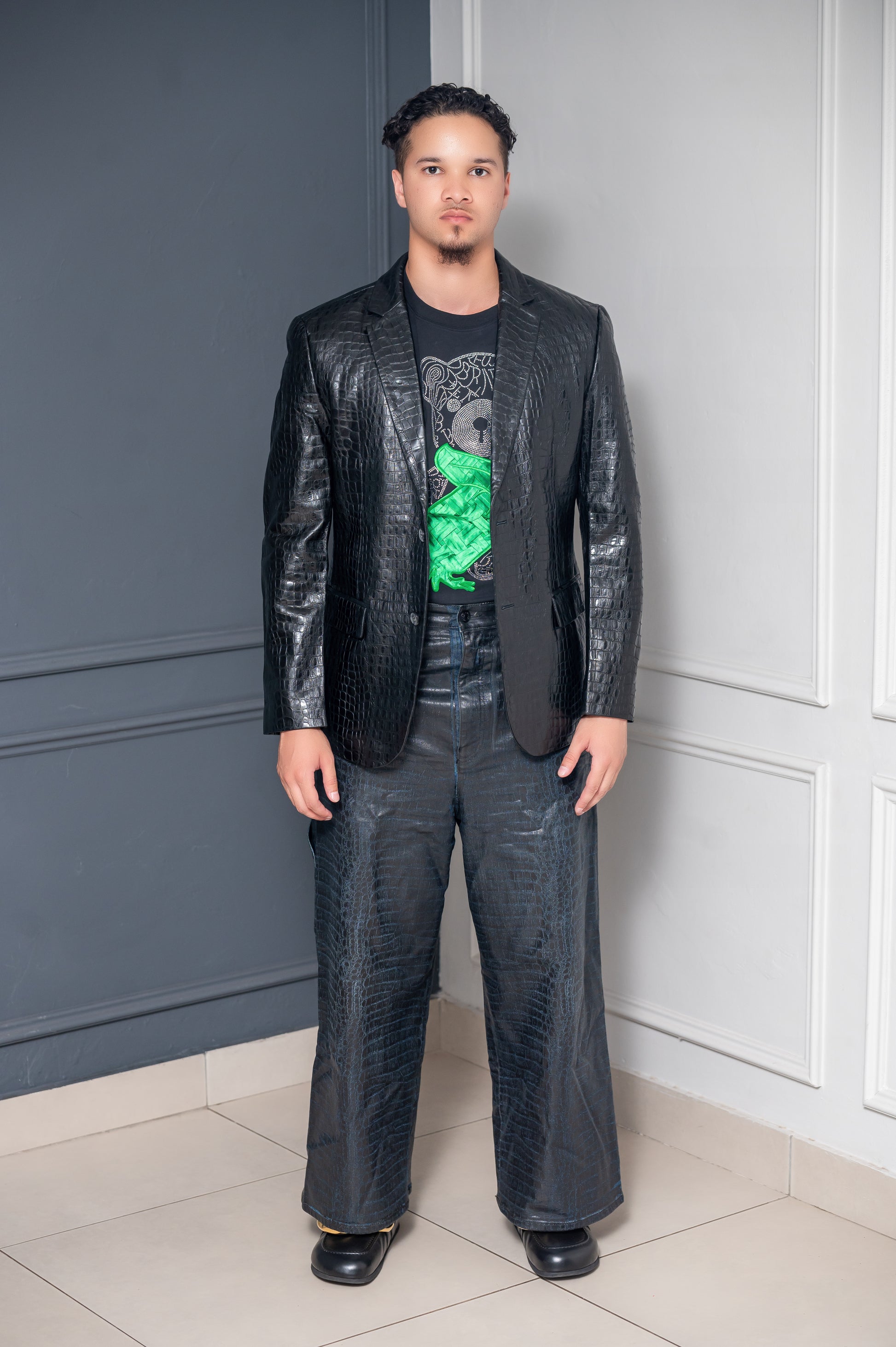 This short-sleeved jersey T-shirt is crafted in a premium cotton-blend, featuring a striking green bear motif embellished with sparkling crystals for a statement of refined individuality. Designed for the modern wearer who values subtle yet unmistakable luxury, it pairs effortlessly with tailored trousers or street-ready denim. The relaxed fit and crewneck silhouette ensure comfort without compromising style.
